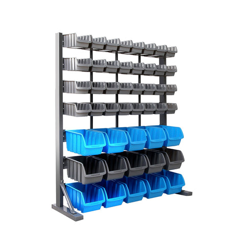 47 Storage Bin Rack With Magnetic Tool Bar Comprising of 47 durable moulded bins within a rust resistent steel frame, therack has ample space for various items. Features* Heavy duty 124KG capacity bin rack shelf*...