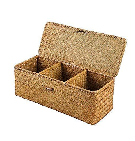 Product information:Material: CottonScope of application: Underwear, bags, cosmetics/jewelry, books and magazines, change of clothesColor: Natural colorHand-woven creative desktop storage basket three lattice cosmetic storage box storage basket jewelry storage basketThree lattice cosmetic storage box storage...