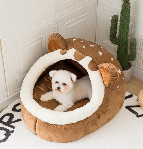 Overview: Cute "bear head den" Let the dog--turn his head, just want to bury it Cute bear ears, delicate beard Animal shape design to enhance the appearance of the shape High resilience PP cotton Not...