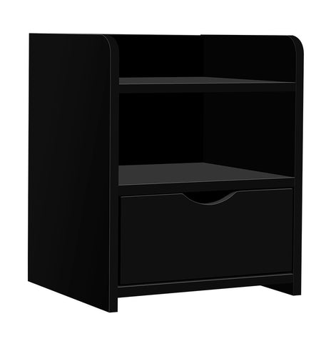 Bedsides Table with Drawer Black The bedside table features a drawer and shelving unit and is built with 15mm thickboards that is designed to be durable and stable.Features* Solid construction* 15mm thick board* Shelves and...