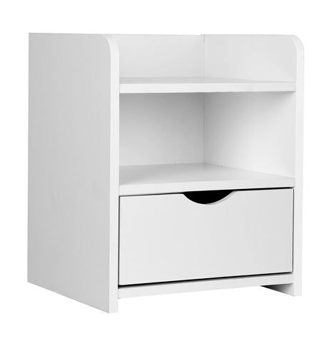 Bedsides Table with Drawer White The bedside table features a drawer and shelving unit and is built with 15mm thickboards that is designed to be durable and stable.Features* Solid construction* 15mm thick board* Shelves and...