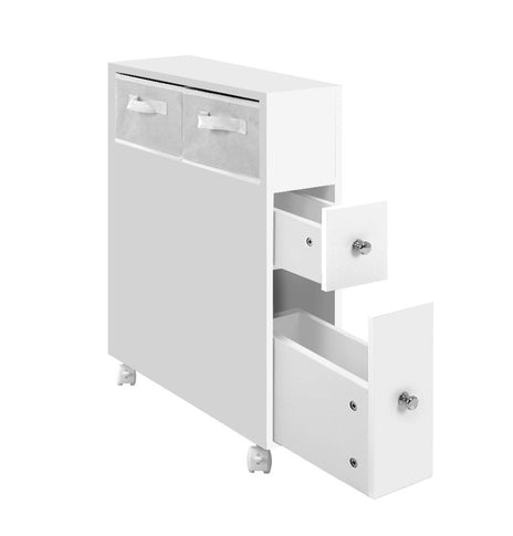 Bathroom Tallboy Storage Cabinet - White Featuring a MDF construction the storage cabinet comprises of four drawers and two shelves. Features: * Contemporary and stylish * Durable and practical * E1 MDF board with NC...
