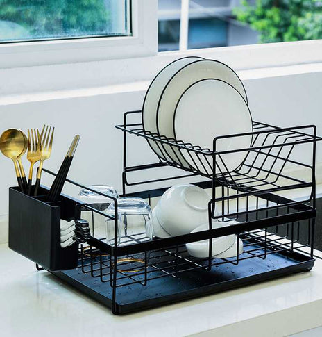 Product Information Product Name: Double Dish Rack Material: iron+PP material Application: storage bowls, plates, chopsticks and other tableware Removable upper layer Bottom drain tray design Tidy countertop Prevent water accumulation from wetting the countertop Easy to...