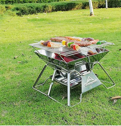 Stove type: Multi-fuel stoveFurnace structure: split typeFuel type: multiple fuelsColor classification: silver Product Name: Mini BBQ Grill Product material: high quality stainless steel Product color: silver Product size: expand 19*15*18.5cm