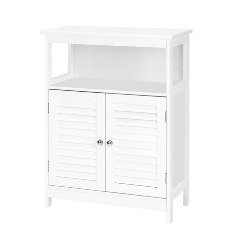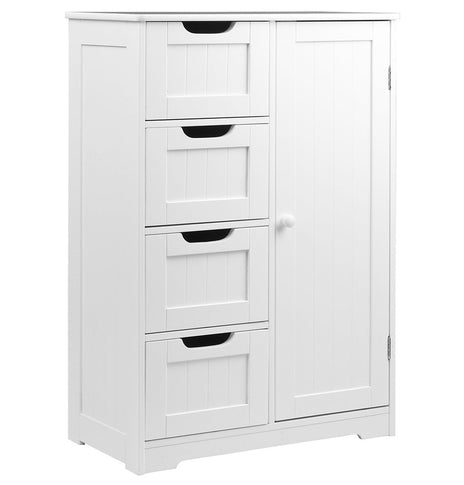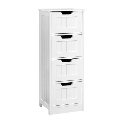 Bathroom Tallboy Storage Cabinet - White Featuring a MDF construction the storage cabinet comprises of four drawers and two shelves. Features: * Contemporary and stylish * Durable and practical * E1 MDF board with NC...