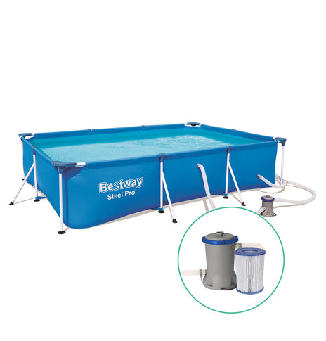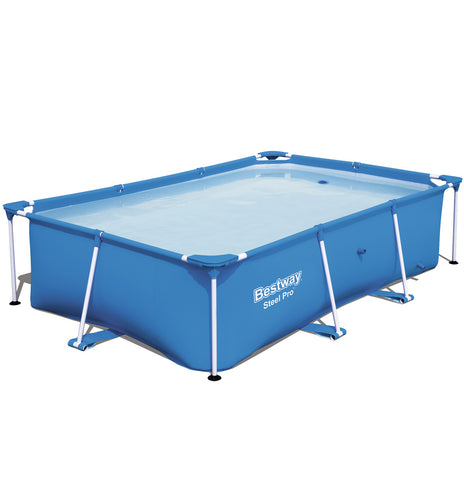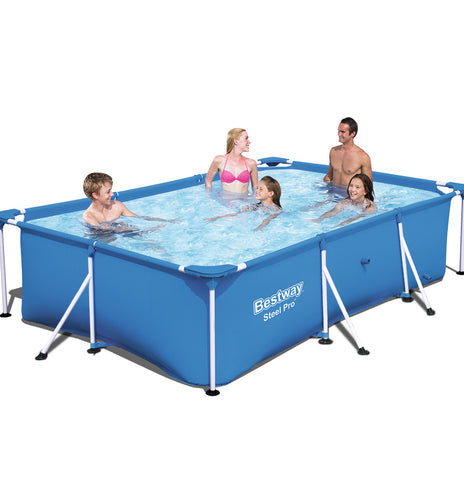 Bestway Above Ground Rectangular Pool Featuring heavy duty PVC and polyester 3 ply side walls that are reinforced with rope wraps around the bottom, the pool is made for durability. Features * Steel Proframe pool...