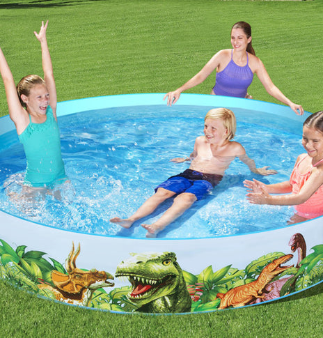 Designed for active 2-year-olds, the Bestway?? Dinosaurous Fill-n-Fun Pool is a joy for them to have a splashing and soaking good time. The 1.83m x 38cm pool is made of rigid and heavy-duty PVC sidewalls...