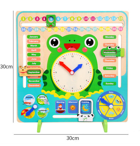 Overview:A super-recommended clock toy by the seller, superb design, not only the clock cognition, but also the season, month, weather and so on.Specificatioin:Product Name: Multi-function Calendar ClockAge Range: > 3 years oldSize: 30*30*0.8 cmMaterial: High...